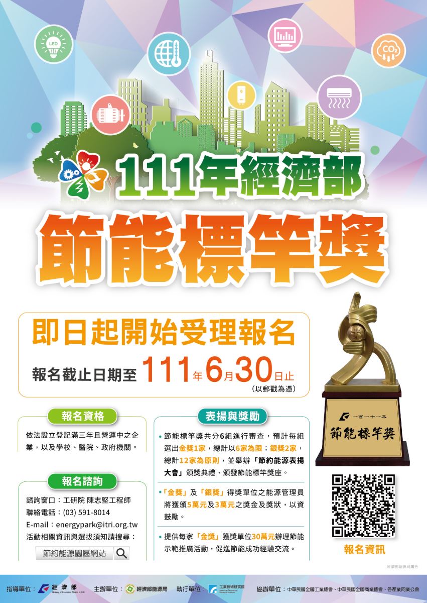 111年經濟部節能標竿獎選拔活動開跑~即日起至111年6/30日止